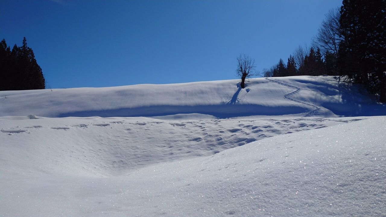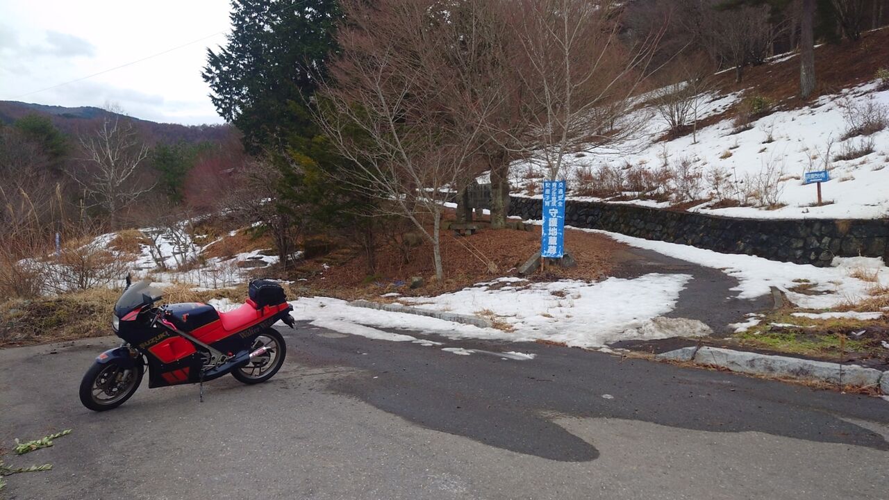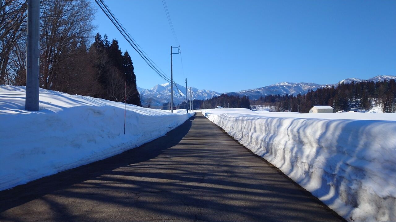 新地蔵峠を越えて、まだ沿道には雪が結構あり…