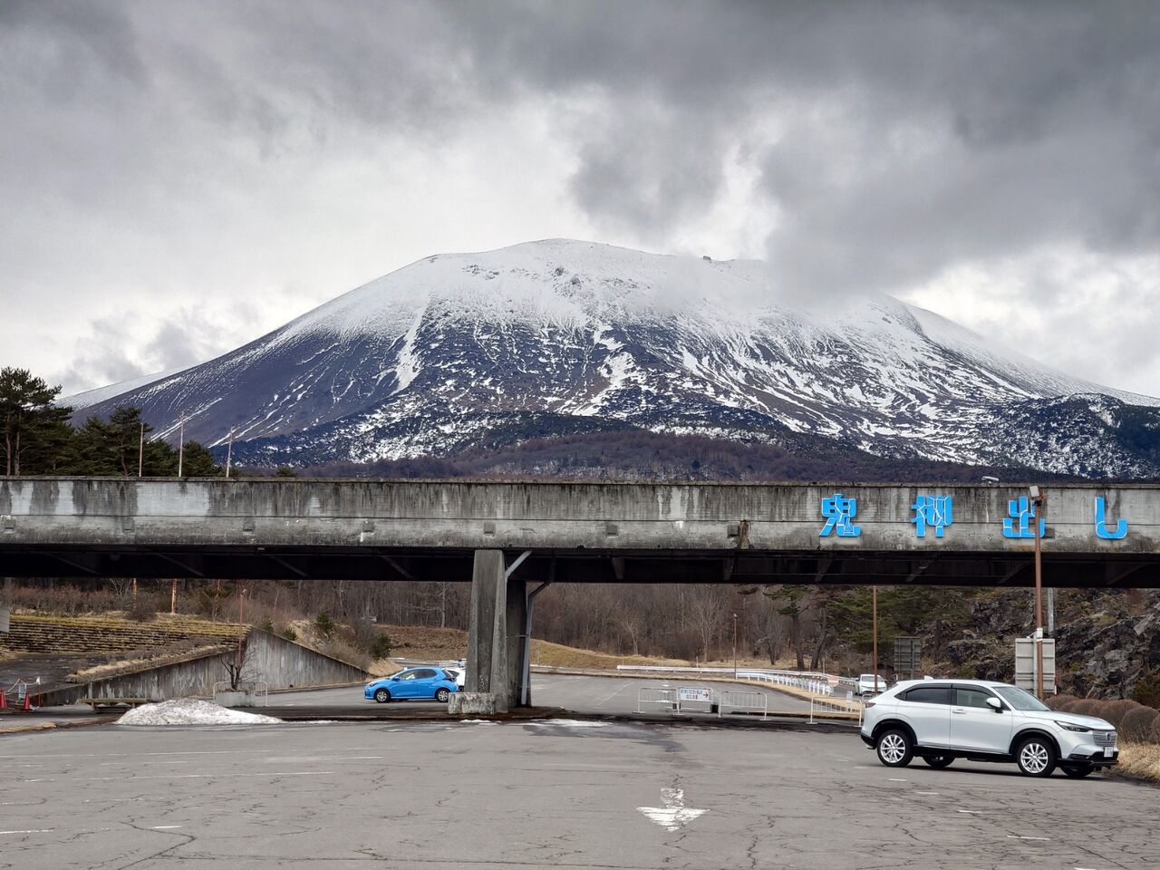 日本ロマンチック街道を南下しながら鬼押出しに☝️…それまで雲に隠れてた浅間山が顔を出して🙂